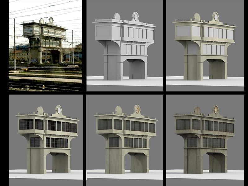 On the train from Turin to Milan I've been fascinated by this strange building, with some kind of steampunk echo. Fully textured model, specular along both axes X and Y. 3800 vertices, more or less.