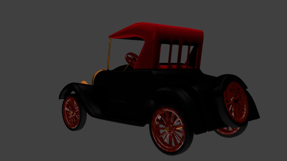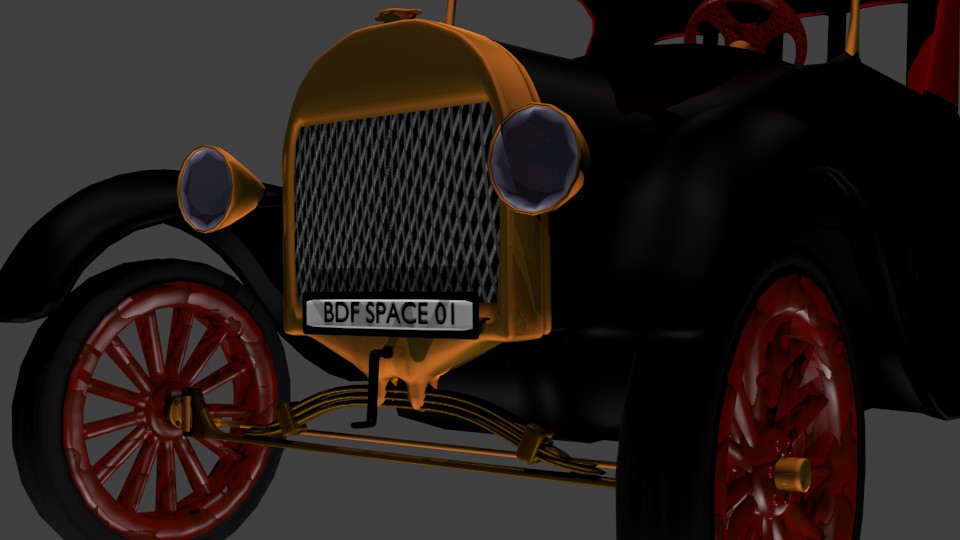 A Ford model T from 1923 costum made for a game, matrials and textures made in Blender v2.68, 71079 faces subdivision surface Modifier used, might need to join some parts to use in your game, licenceplate name easy adjusteble.