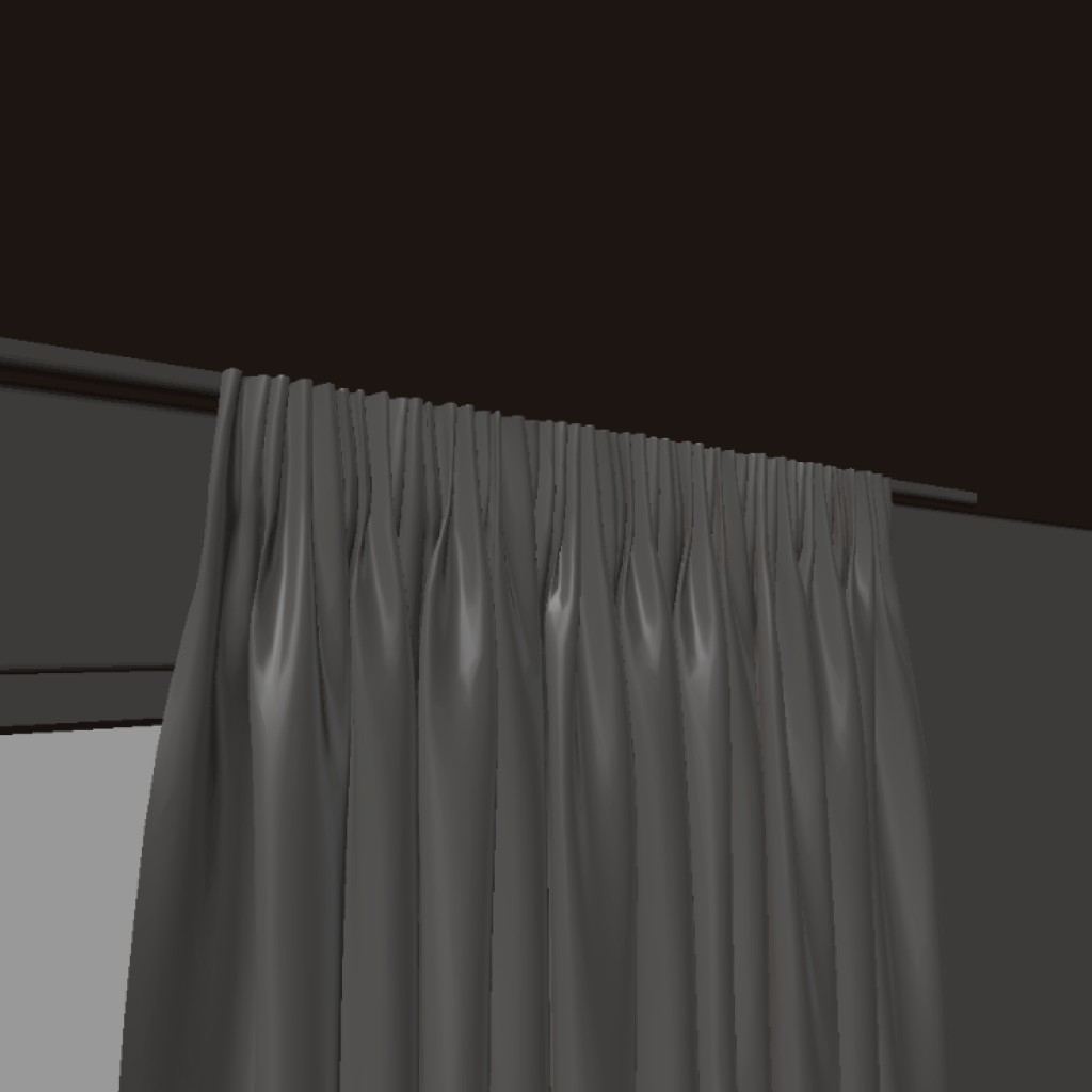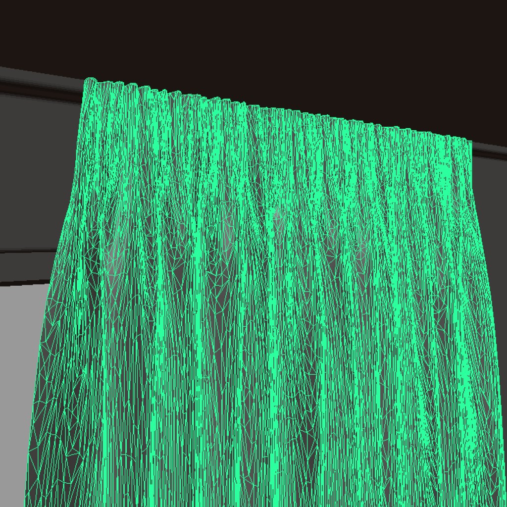 Simple curtain. You might want to make a nicer material. UVs are there, they are a bit distorted by decimation, but should be perfect for any cloth texture without complicated patterns.
