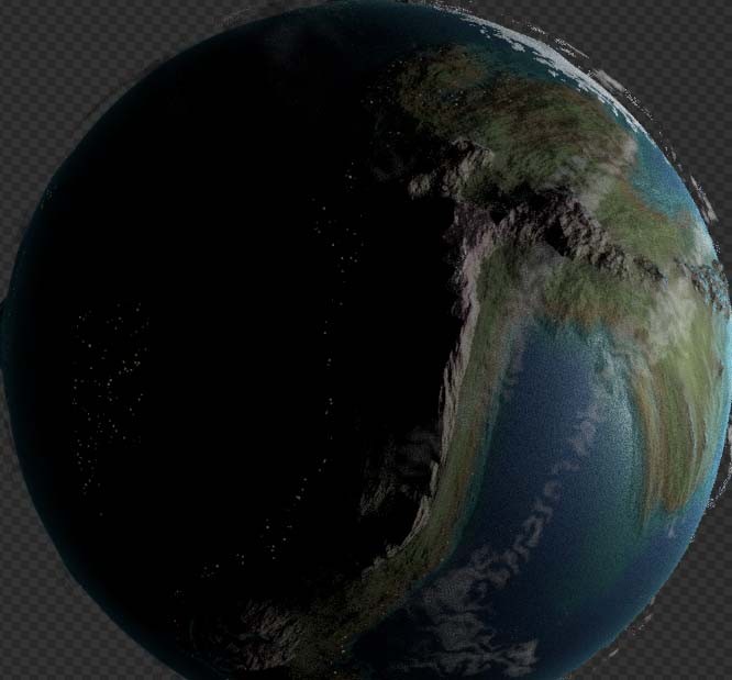 Here goes this planet material I created with experimental displacement and material nodes. Blend file includes planet with some mountains, continents, and city lights in continents. (lights are not very well visible during day, so check the other image to see them) Then you also need to have this separate object that has clouds.