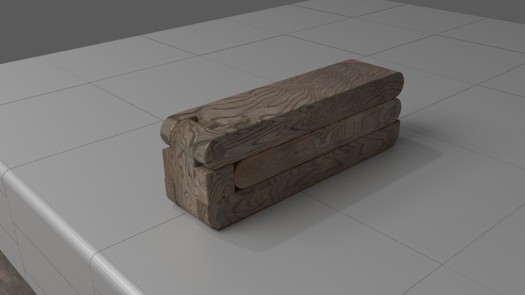 An innovative nutcracker design shown with a bowl of walnuts, some crushed walnut shells and asingle walnut about to be cracked. The bowl of nuts and the crushed nut shells are taken from swaps contributed by the Blend Swap User Peterling. The wood texture is downloaded from Textures.com. The single nut about to be cracked is manual modification of the bowl of nuts blend created by Peterling.