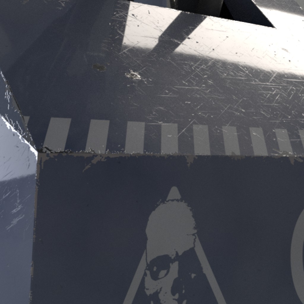 Much effort went into the texturing process and the blue armor is the most complex node-setup I've done. Almost everything is procedural to keep detail and edges when zooming in. I had to handpaint the flaked paint on the edges but figured out a way to "proceduralize" the image inside of cycles, it now work up close to. The only thing in the final material that still is a image are the decals on the armor.