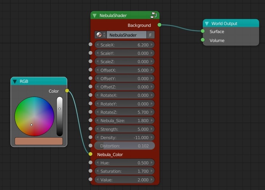 This shader can generate different forms of nebulae. Use the sliders ''Scale, Offset, Rotate'' to change the shape and location of the nebula. The slider ''Density'' is responsible for the scale of the pattern in the form of clouds of the nebula. and the slider ''Distortion'' bends pattern clouds.