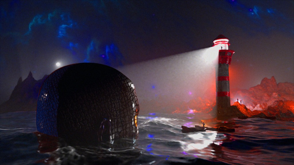 Scene of a underwater giant reaching the coast. Rendering with Cycles. I used the "Procedural Painted Metal Material"-- https://www.blendswap.com/blends/view/86037 from the user Zantique