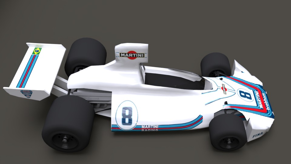 This is a very low poly Brabham BT44 F1 racing car from 70s. I've used blueprints just as reference, maintaining siimple and smooth. The chassis has no subdivision surface, so you can use on low cost computers to render on any project you may have.