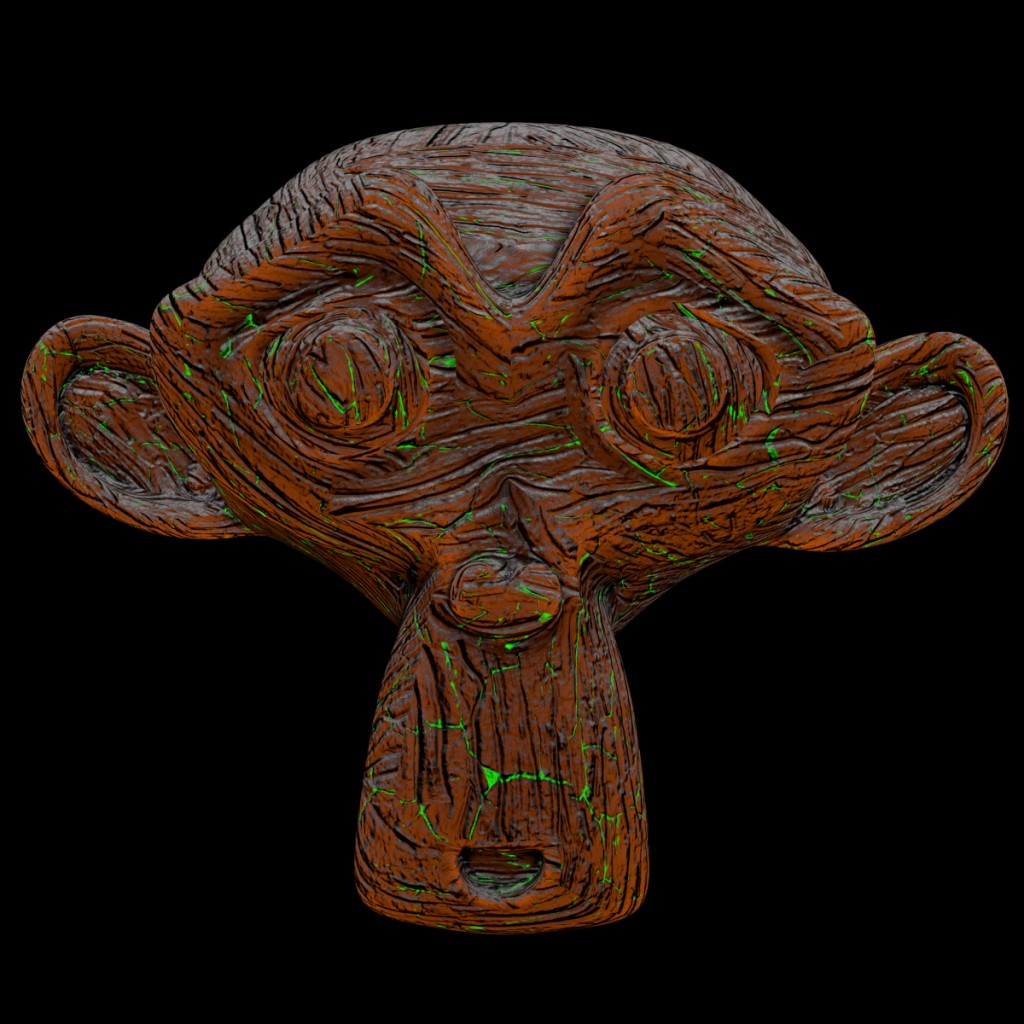 The material node include two groups - 1) image texture of the cracks and 2) the main image texture with its own normal, displacement (bump), ambient occlusion (AO) and specularity (SPEC) maps. The color of the cracks can be changed via "CRACKS COLOR CONTROL PANEL" frame. The main image texture (Diffuse Map) and associated AO and SPEC nodes can be detached from the "Main Color of Object" node to allow the domination of one solid color of your choice (see sample image of Burnt Orange Susanne with Green cracks). In such case, appropriate normal and bump maps can be left as is, replaced with your own images or disabled. The amount and intensity of dust particles can be adjusted through "DUST CONTROL PANEL" frame. Please note that dust particles are made to fall onto the object and accumulate in crevices in Z direction.
