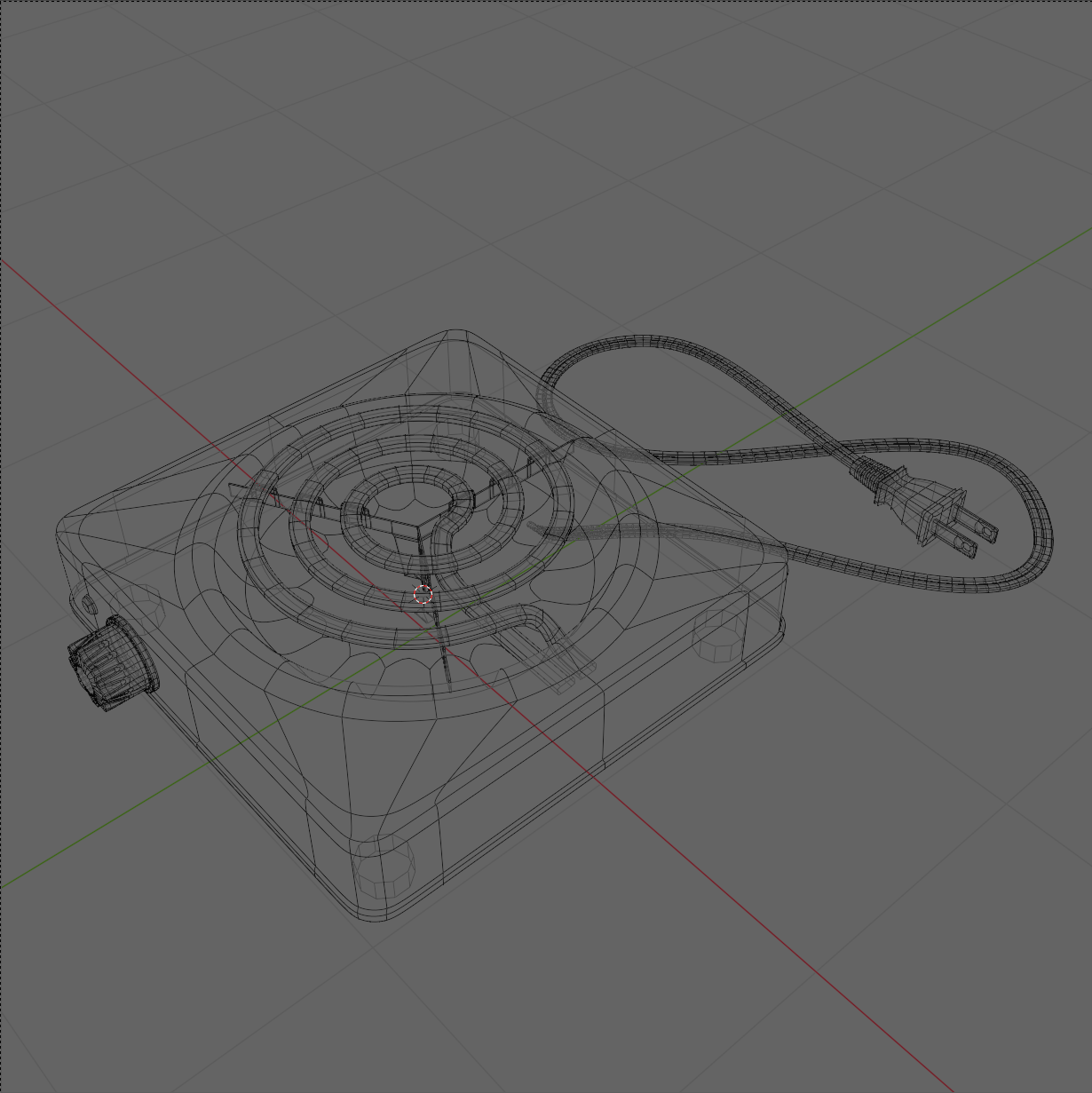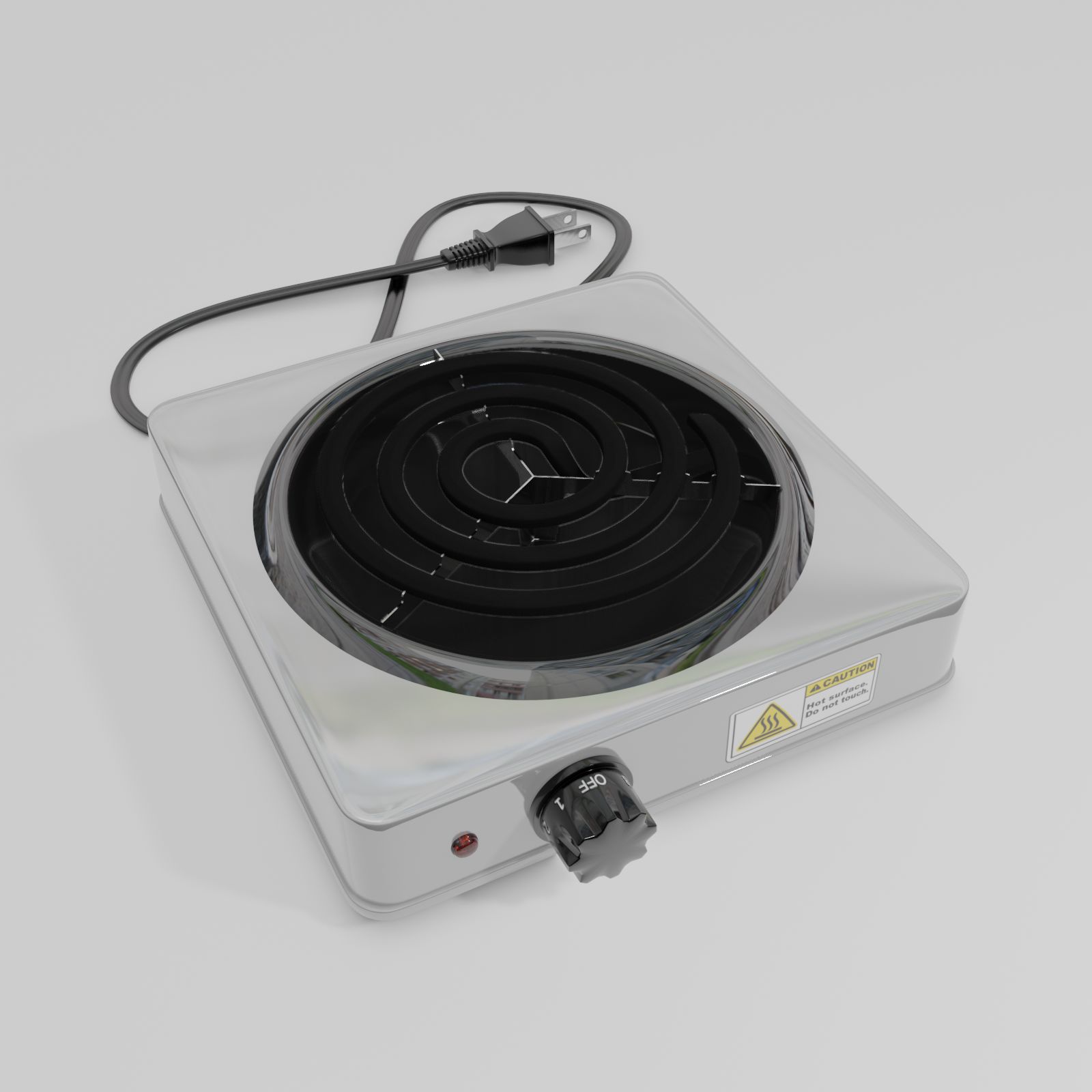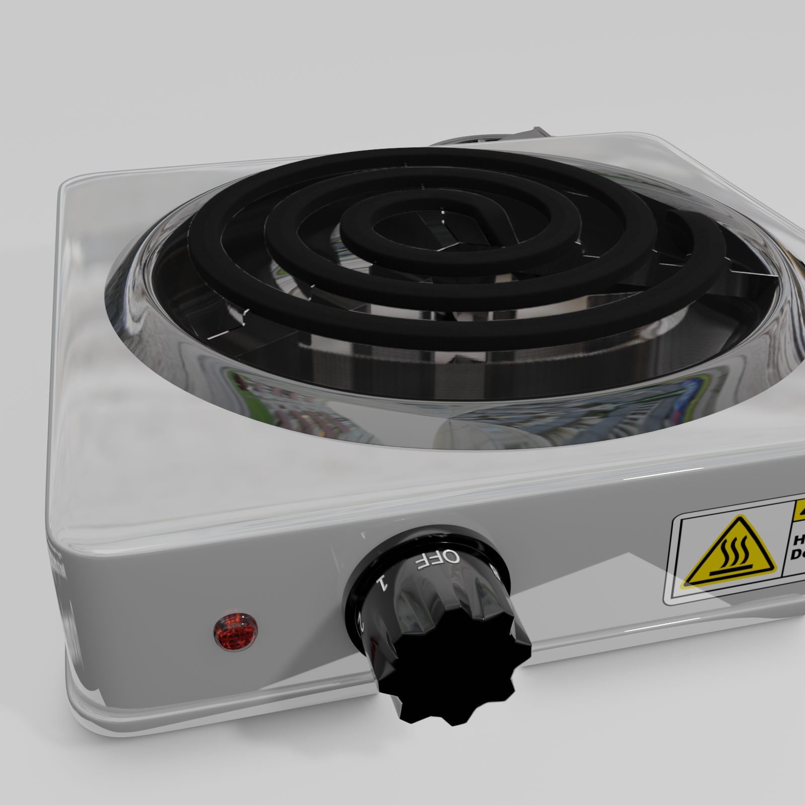 Simple electric cooktop. Clean simple geometry. You may want to bake modifiers and/or convert curves to meshes before use. Easter egg: Enable the two dirty textures for a used look.