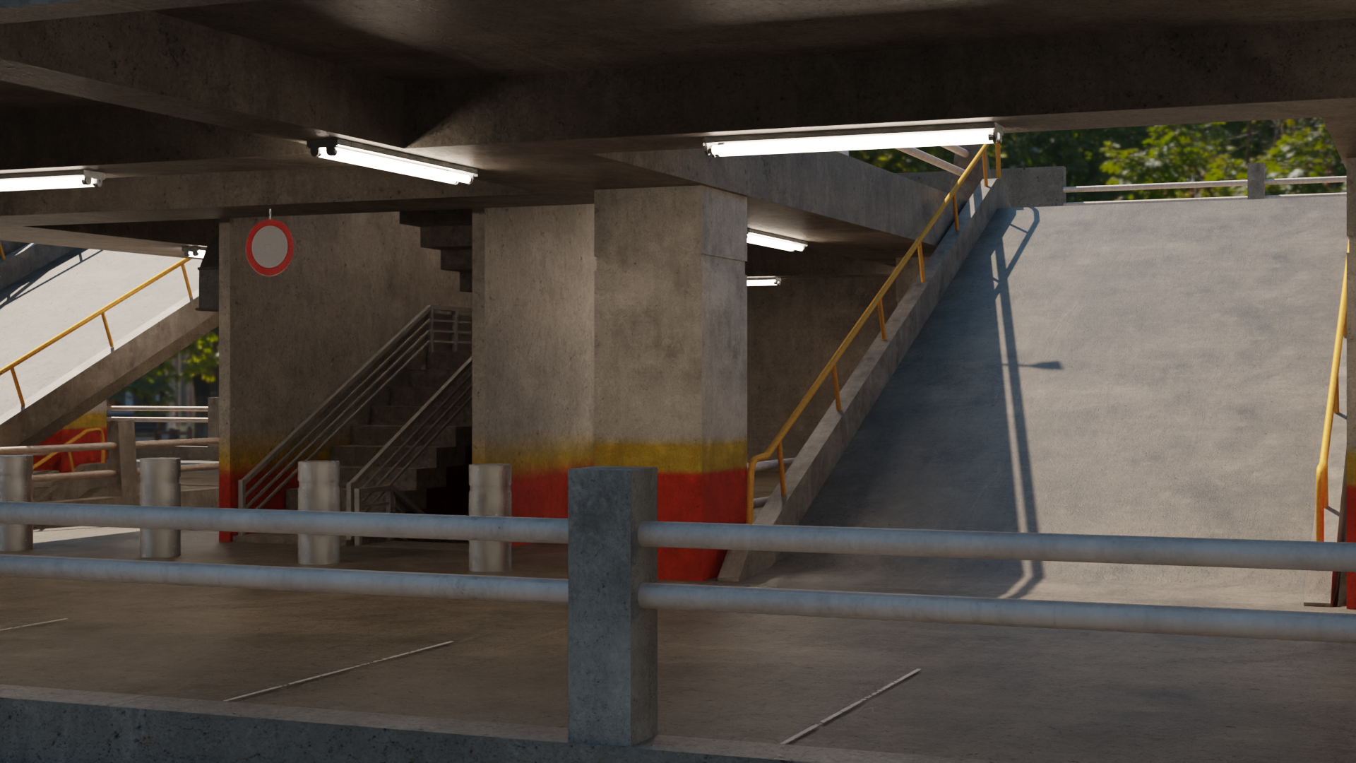 A Multi-floor Parking Garage all original textures are packed which totals to 28mb with all externally sourced textures being 4k/8k originating from 3dassets.one (mostly cc0 textures) totalling to 863 mb, my workflow is mostly 8k assets as most modern gpu's and game engines max texture res without freaking out is 8k