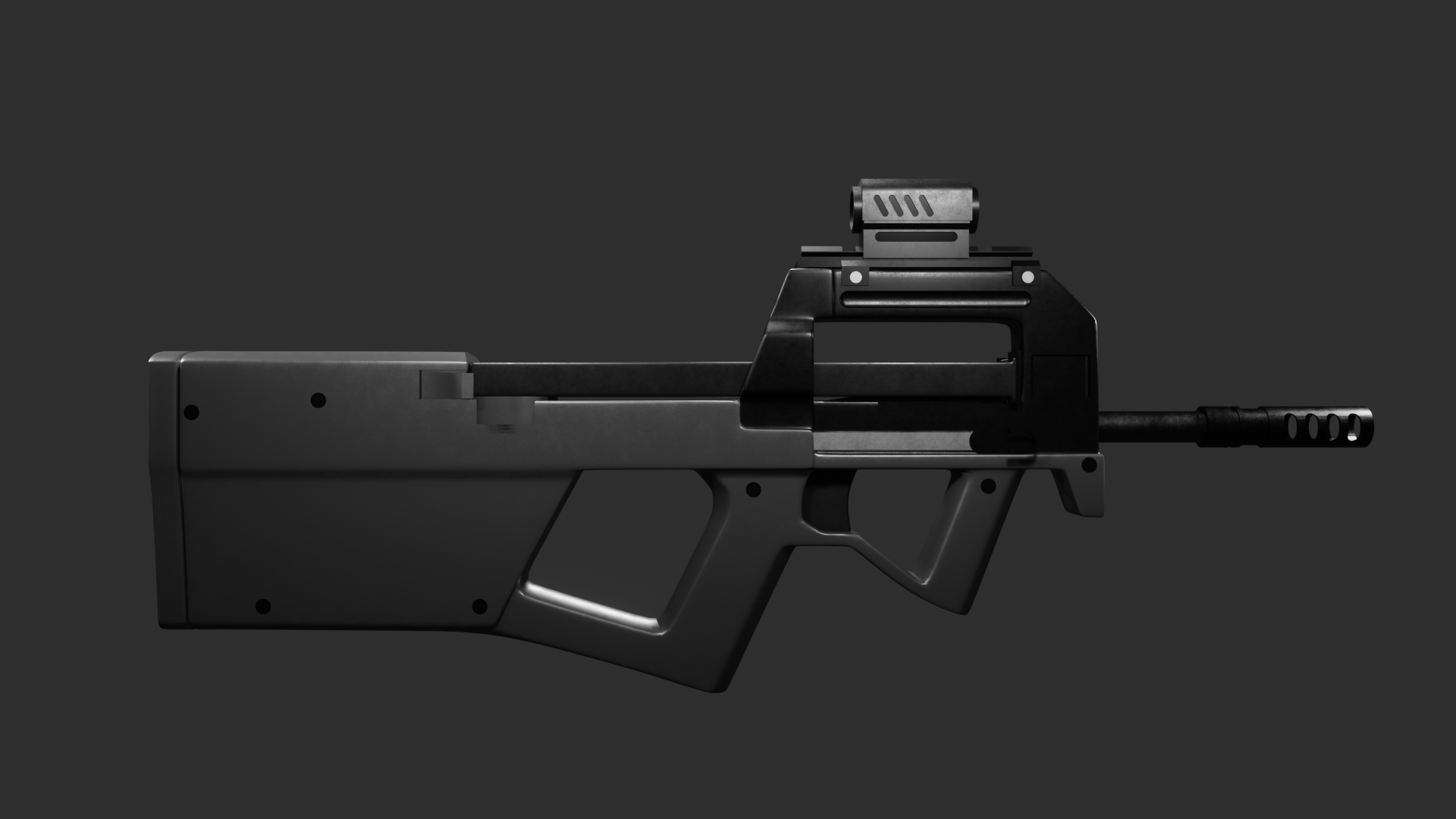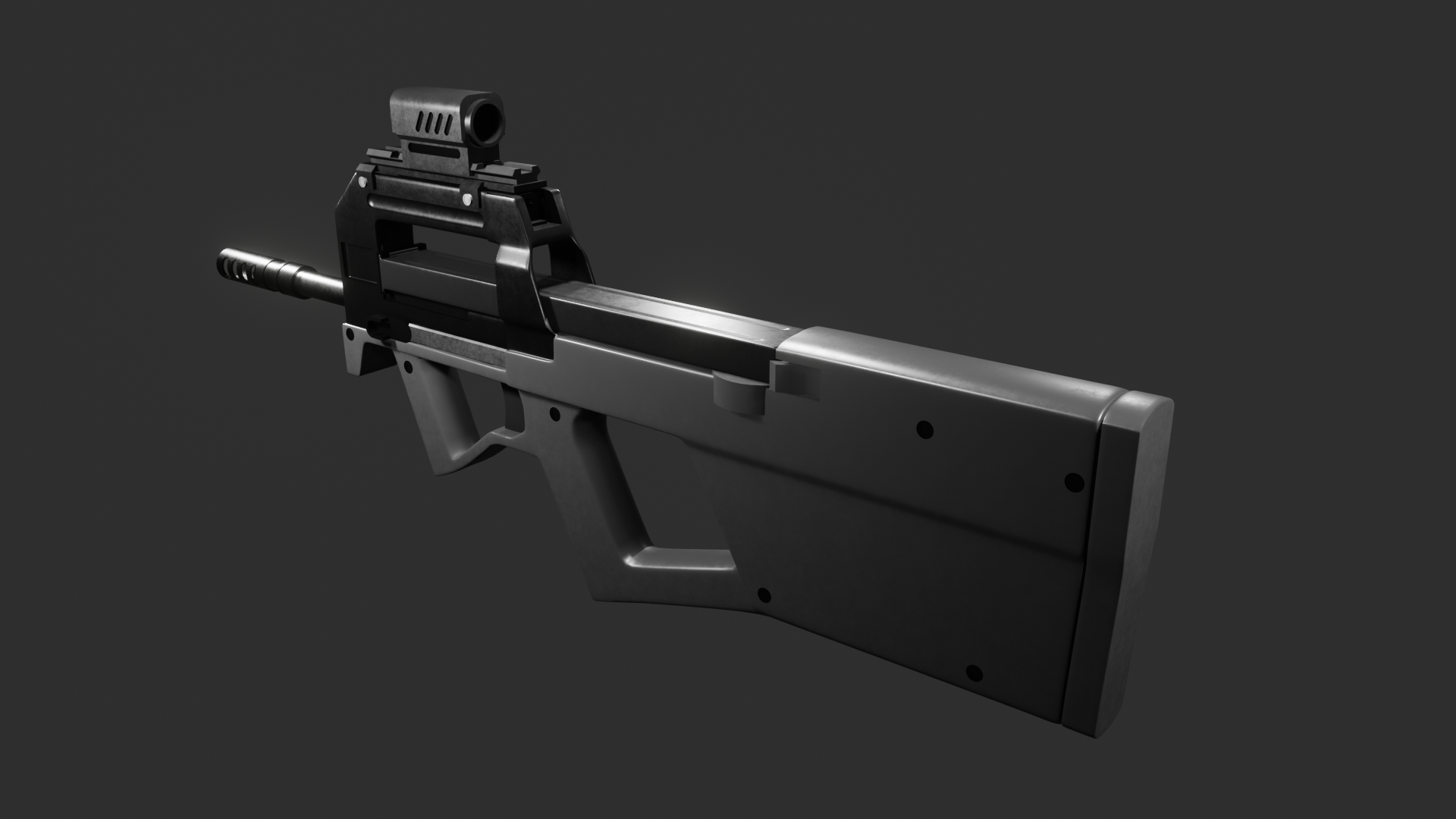 This is a 3D model of the SMG P90 that I created and redesigned. And this weapon I named Naudaff P90 SMG.