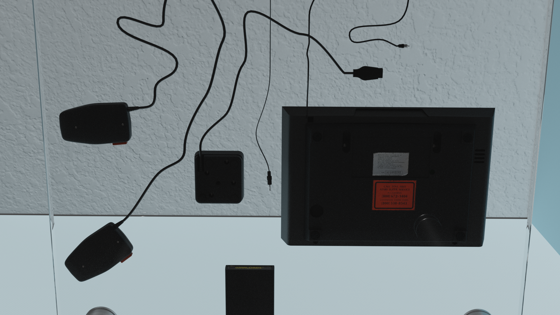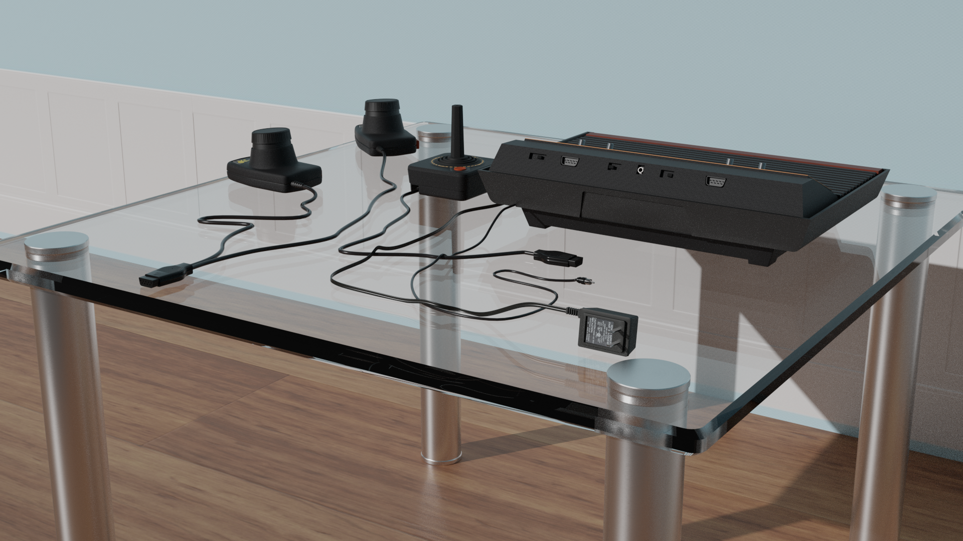 An Atari 2600 with paddle controllers and a stick controller with the game Warlords. All textures are from https://3dtextures.me/.