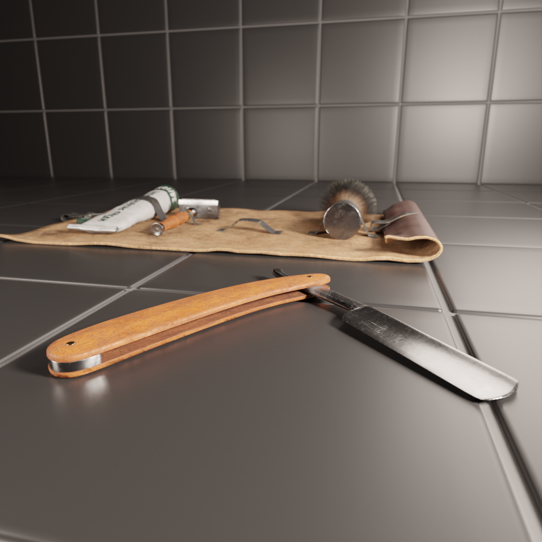 Nice work, the worn look on the shaving set already tells a bit of a story and the 2K textures seem to hold up well for close shots. If you want to push it further, you could add more variation in roughness and small surface imperfections around the metal edges and brush handle, plus a few subtle stains or dust decals. For ideas on how viewers read detail and focus, I once saw some surprisingly useful thoughts on pacing and visual flow at https://pinco-casinokz.com