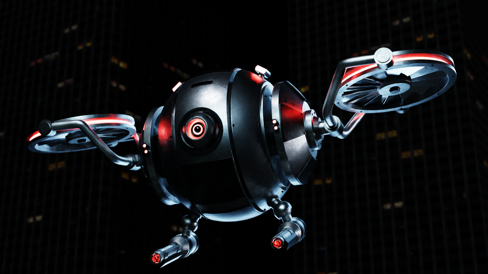 Hey there, I made a sci-fi looking security drone with a cool city environment. The model is rendered in eevee render engine and also can be rendered in cycles render engine as per preference. The materials are procedural and done in blender. The hdri used is from hdri haven and the textures used for the building are from cgambient. The model is mechanically rigged and contains simple animation with quick camera movements. It can be used by an individual or by a company for advertising. Further any person can edit and make it more cooler and abstract. The model is purely modelled and textured by me. It contains all the criterias and specifications for a cool robot more particulary a drone. It has been made by taking inspiration from Call of Duty.