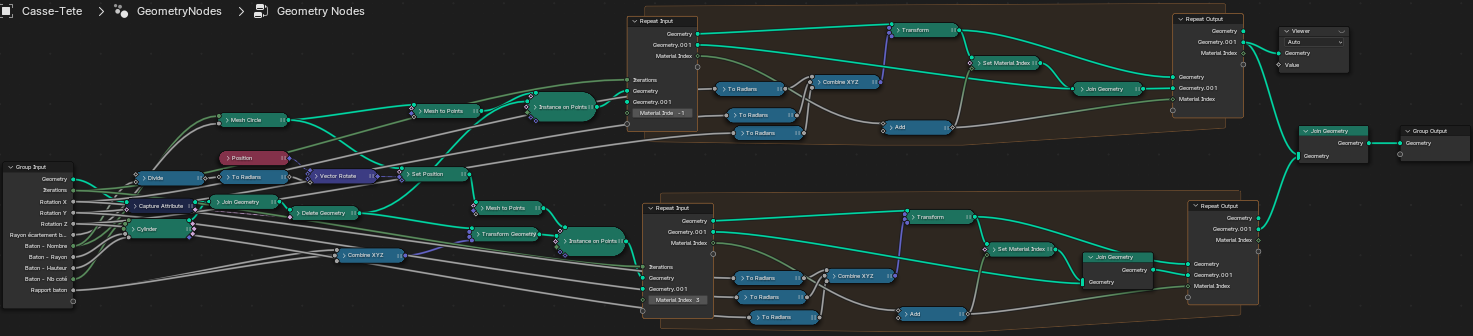 Iteration integration set to display a defined number of sticks and shifted on X, Y and Z angles to find new combinations.