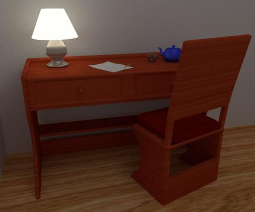 Modern Wooden Desk and Desk Lamp