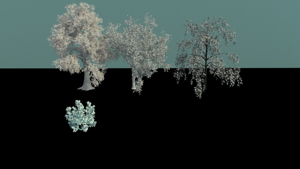 Important : TREES AND ROSES ARE WITHOUT TEXTURES AND MATERIALS.