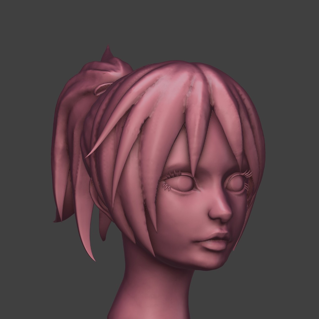 Sculpted head partly inspired by Ui Hirasawa (K-On!). It uses bevel curve tools and sculpt tools addon. All colored using vertex paint, except the eye, it uses texture paint. Rendered using GLSL viewport.