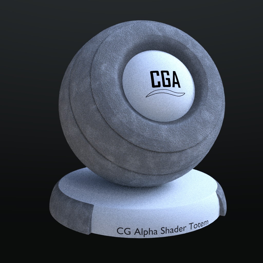 Procedural rough concrete shader rendered in cycles with material nodes. Includes CG Alpha shader totem.
