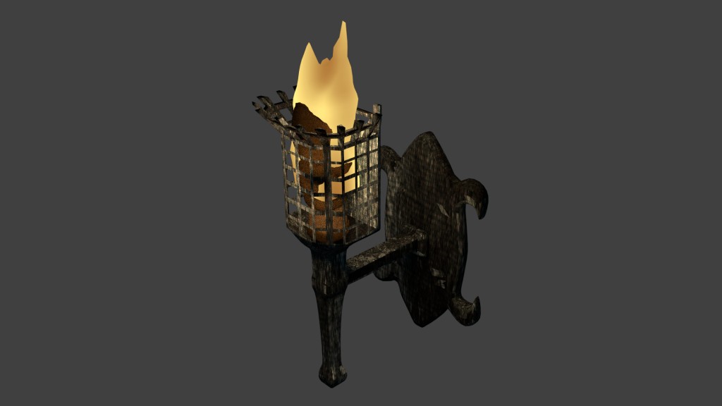 Yet another item from the wizard™ tower scene, however this one is a bit different, as the torch flame is animated with the wave modifier.