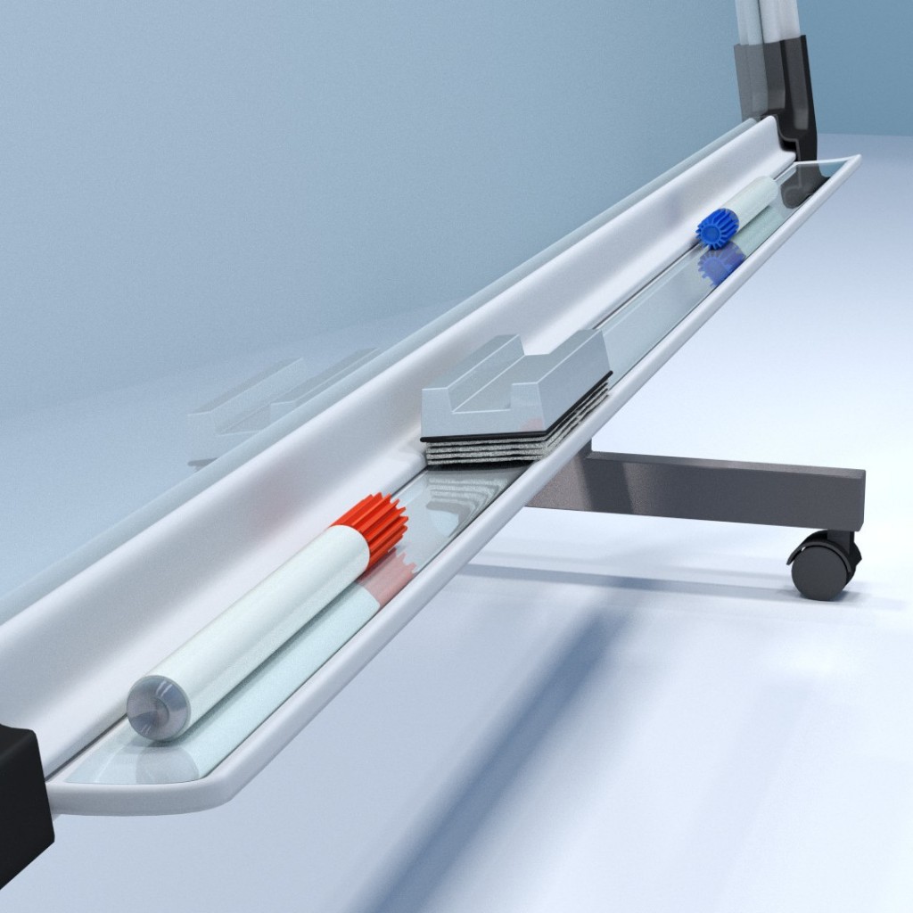 A ready to use mobile marker board with two markers and an eraser. Modeled and rendered in Blender 2.75a