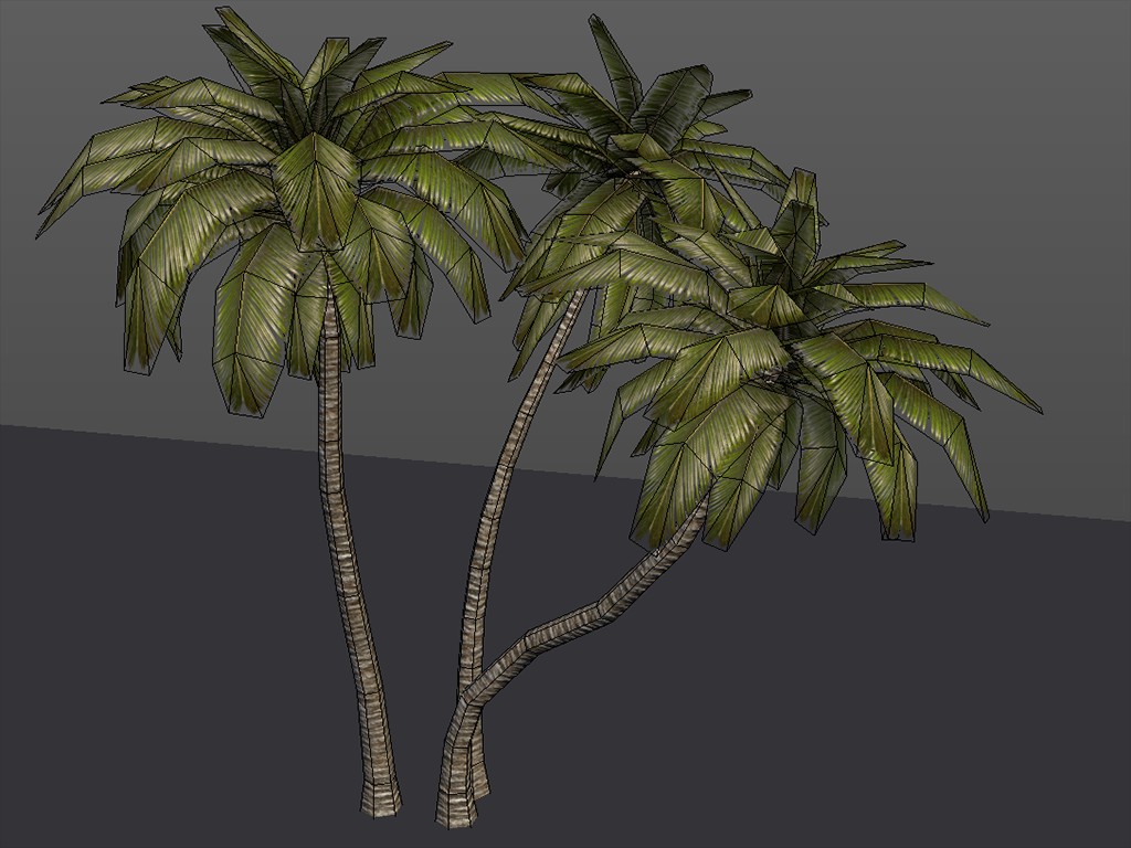 Palm 1: 892tris/665verts (LoD0) - 448tris/396verts (LoD1)