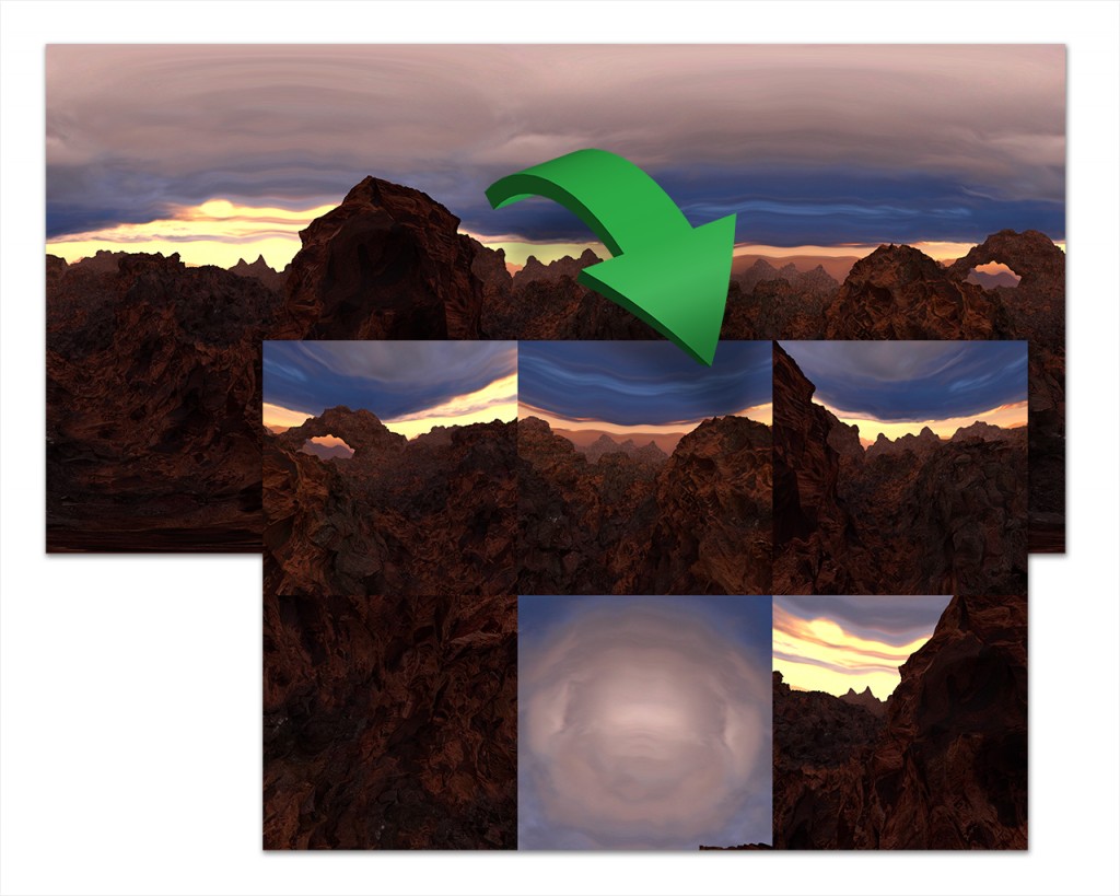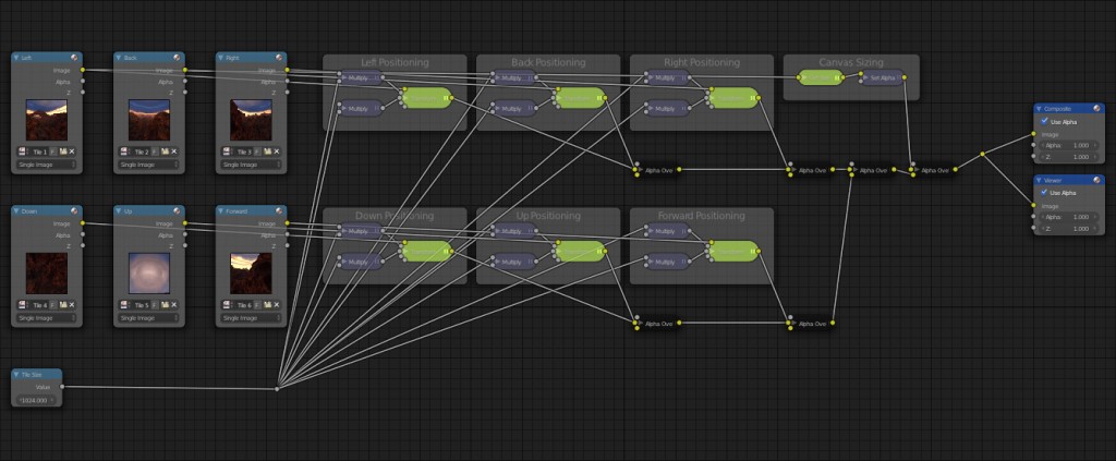 This kit uses two .blend files to create a cube map: a "Cube Cam" for rendering the tiles of your cube map, and a "Cube Map Compositor" for combining your six cube map tiles into one final image in the correct layout.