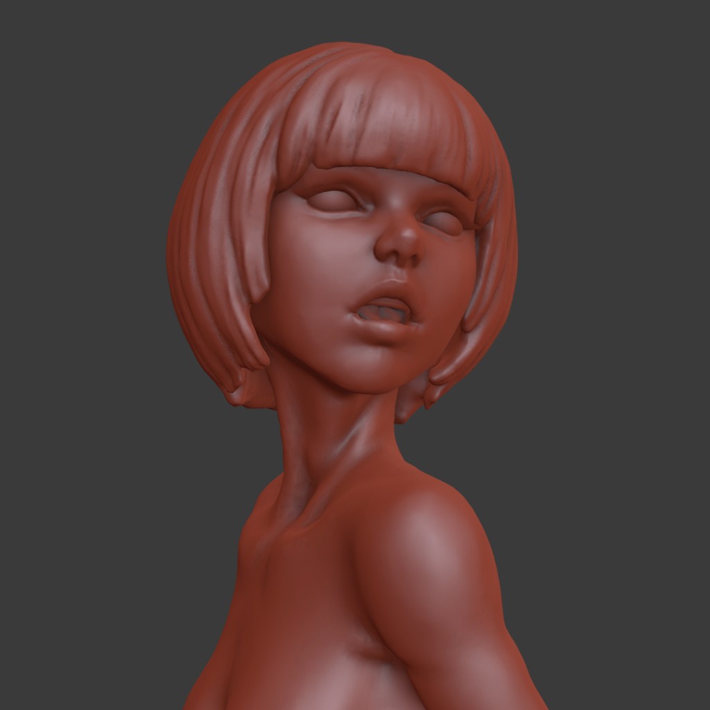 Random girl bust partly inspired by Rei Ayanami (Evangelion). This model only available as high poly dyntopo sculpt with vertex color and realtime material nodes.