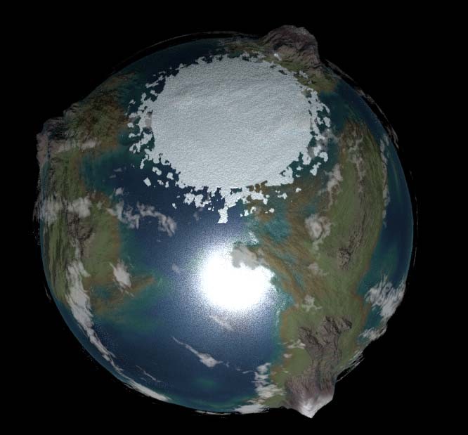 The node setup might be little hard to follow, but I grouped it, so you can generate new planets just by editing the values from mapping node. Current version of Blender the displacement does not update when you edit the values of mapping, so the mountains seems to be in wrong places. You just need to go in object mode and then back to preview mode and it works again. :) Displacement can be removed from the scene just by un connecting it from material output.