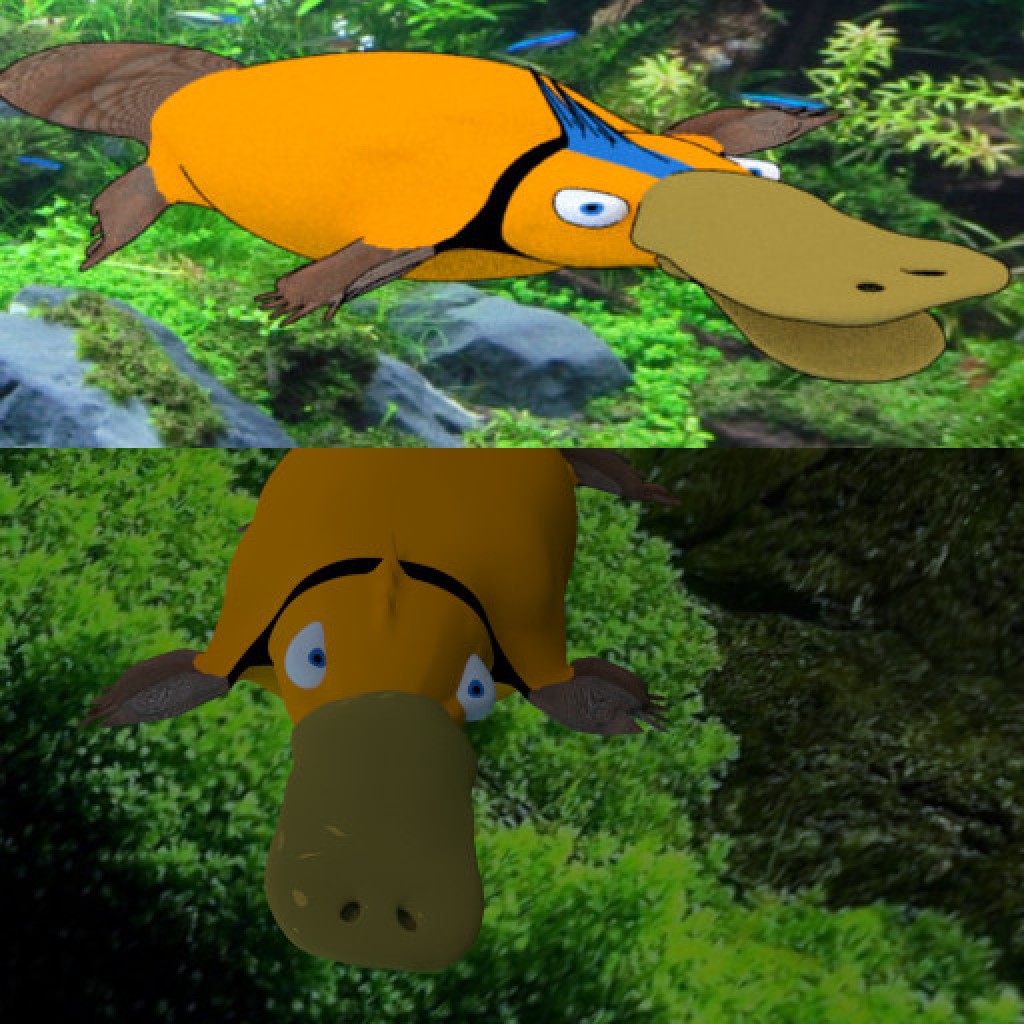 Pudgie is the first version of a mascot I did for the BlenderPDX users group. Here in Portland Oregon 1/2 of the people wanted a Beaver and the other 1/2 a Duck. So I ah put everyone's ideas in a Blender and digested it. The results were we got Pudgie.