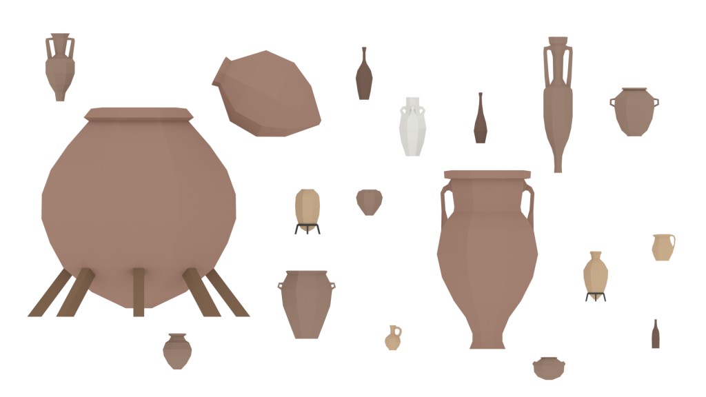 18 low poly clay jars, bottles, urns, and vessels, etc...