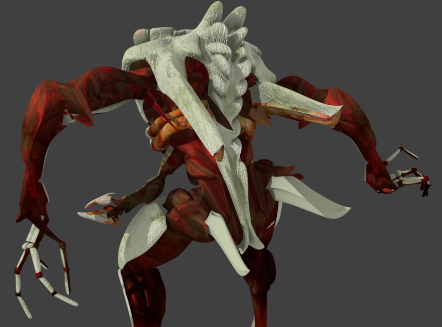 A 3d model of a character in my webcomic. A mage augmented by turning him into a flesh golem (yuck!).