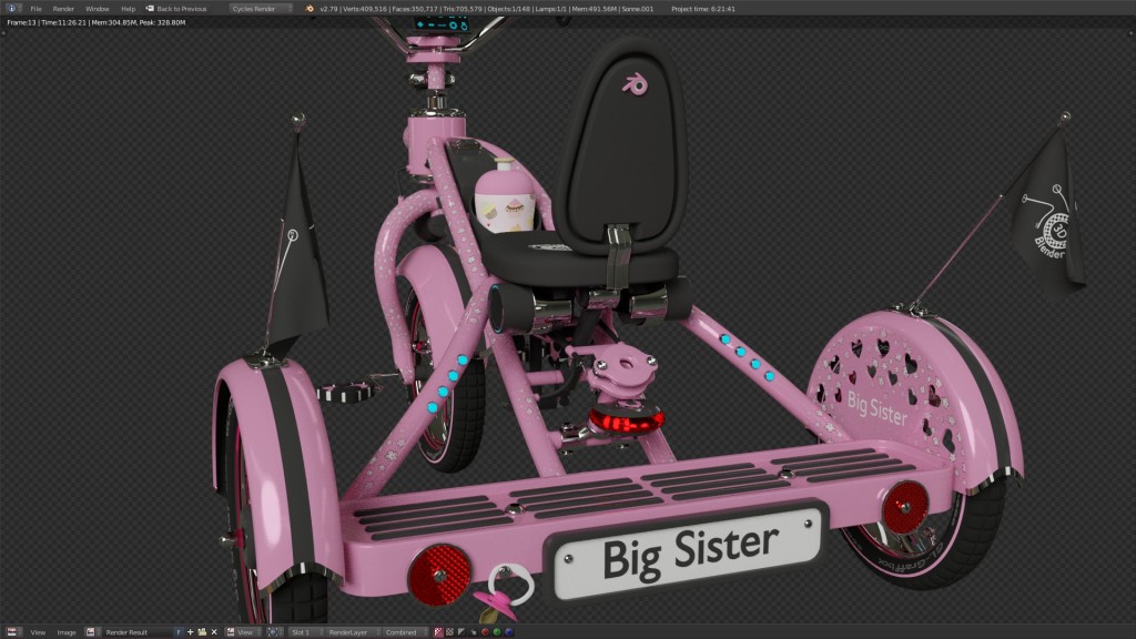Hi this is a tricycle (Big Sister) that i have made free from fantasy. In the comments in the g+ post of this model i have see you like it ;) https://plus.google.com/u/0/+DanielnonameGL-Graffixx/posts/5iJYGqgMmnq And yes it makes me happy and here is a copy from the Tricycle. it is complete rigged and all textures are Creative Commons CC0. you can contact me for all quests about using the model in your one project ;) and we can talk about the Blend License