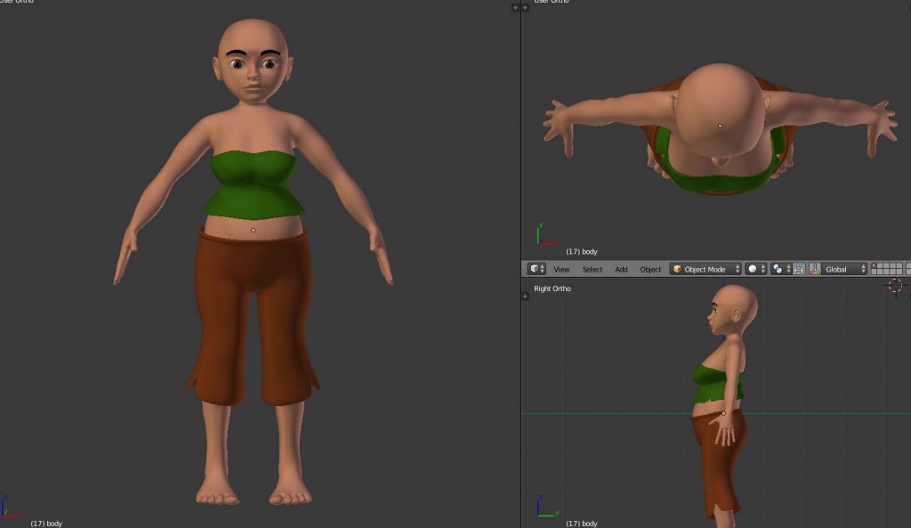 Simple woman with no hair and bare feet. This model is all one piece except the eyes.