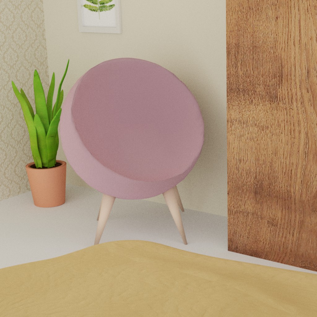 modeled room for my work of end of study. There is a armchair, a frame, a plant, a girlande, a wardrobe and a bed.