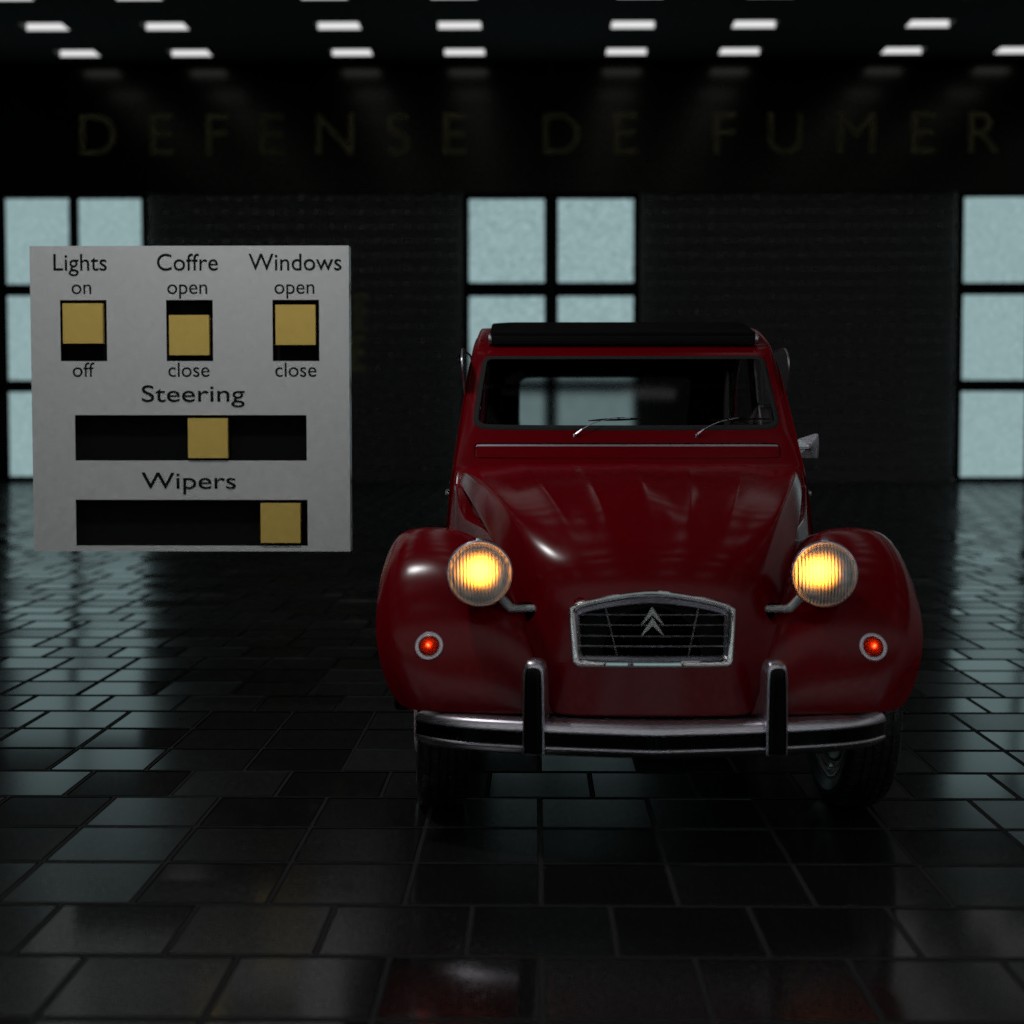 The classic Deux Chevaux! Good memories of riding around Paris in one of these iconic cars. Simple interior, some rigging. Enjoy.