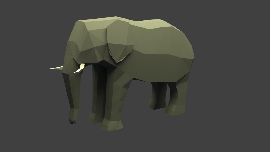 Final Render Scene Render in Cycles Grass Particle System and Low Poly Model of Elephant and Tree