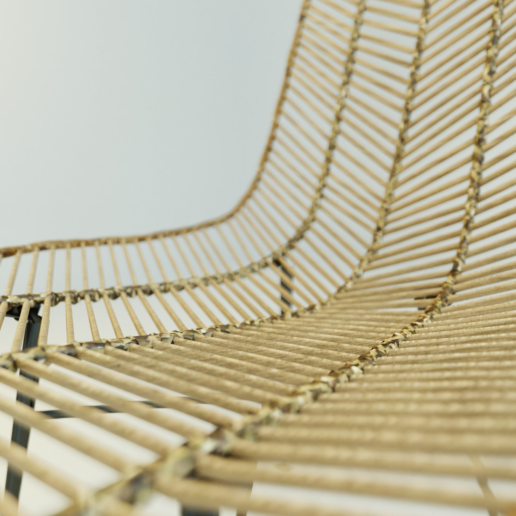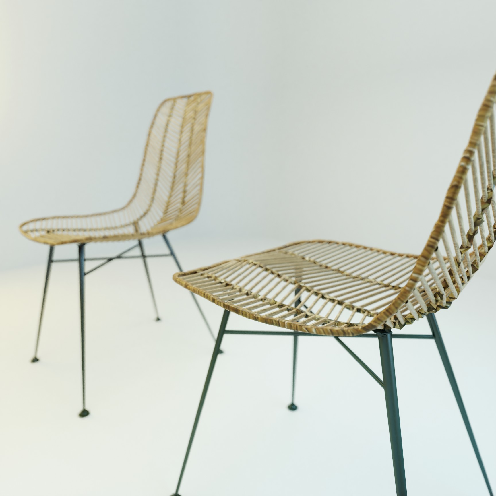 Low Polygon modern wicker/wood. This Scandinavian style chair was made from reference photo. The topology is poor for close detail, cause the nerves are some array/curve and the textures, included, very basics. Legs and proportions are based on the nice model Eames Plastic Side Chairs DSR Fan Art by 3DM .