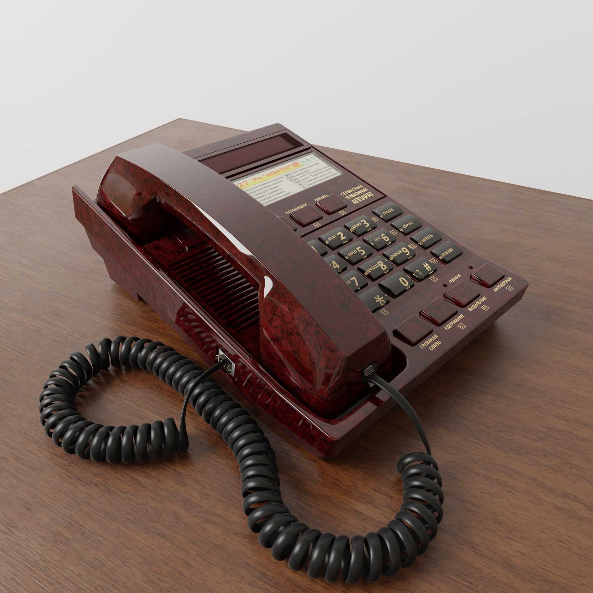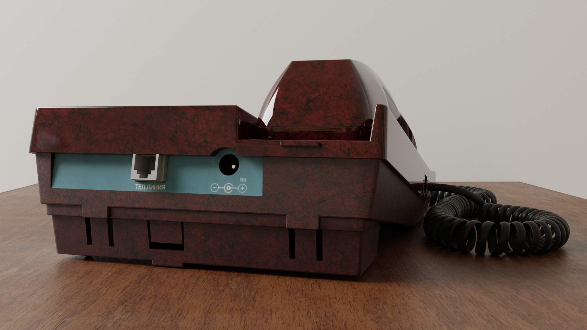 An old phone that I found in a box in my pantry. Red marble texture for plastic parts made in Substance Painter. The texture of the wood for the table is not included in the file.