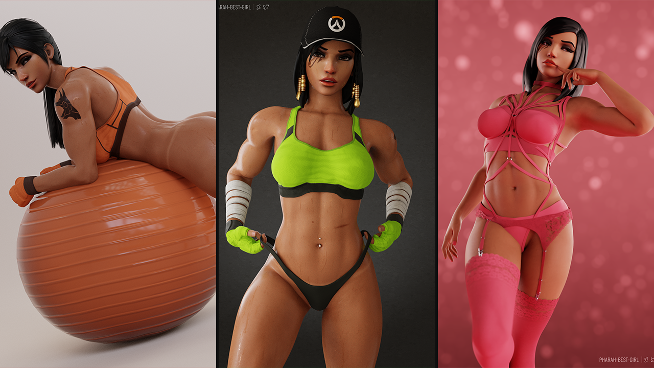 This is a rigged model of Pharah from Overwatch made for Blender 2.80 The model comes with lots of armors, hairdos and outfits plus a next-gen UI that makes mixing and matching items a piece of cake. This is without a doubt one of the most feature rich and easy to use models you can find out there.