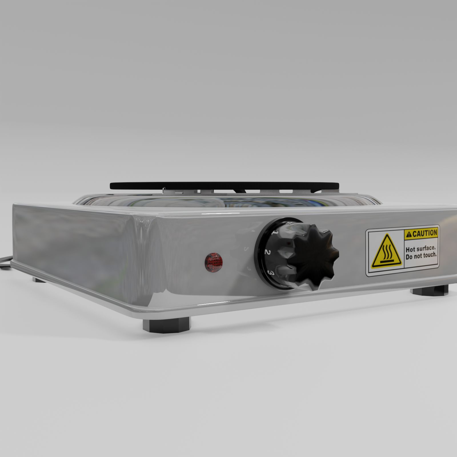 Simple electric cooktop. Clean simple geometry. You may want to bake modifiers and/or convert curves to meshes before use. Easter egg: Enable the two dirty textures for a used look.
