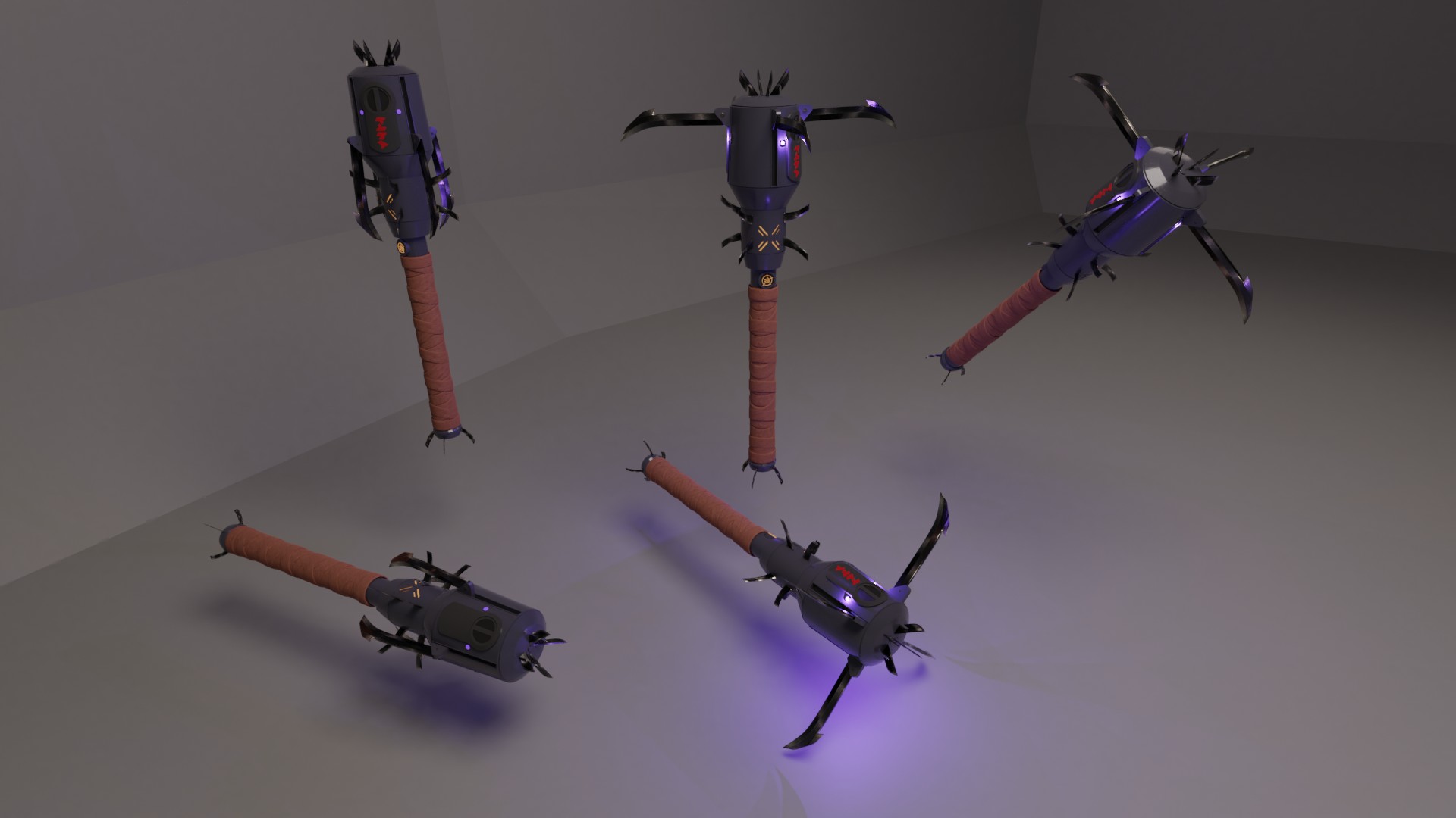 My take on a Halo 3 brute spiker with a built in "safety" feature. When not activated, the four main blades are folded down for easier storage and handling. When activated, the grenade's main 4 blades fold up for maximum damage.