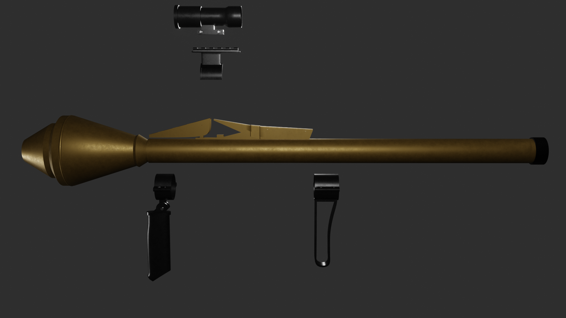 This is a 3D model of the Panzerfaust that I have modified. The Panzerfaust was a single-use anti-tank weapon belonging to Nazi Germany used in World War 2, and this weapon was developed by Nazi Germany in 1942. I've created a 3D model of the Panzerfaust and modified or added a scope, foregrip, and shoulder rest. But don't worry, you can separate them