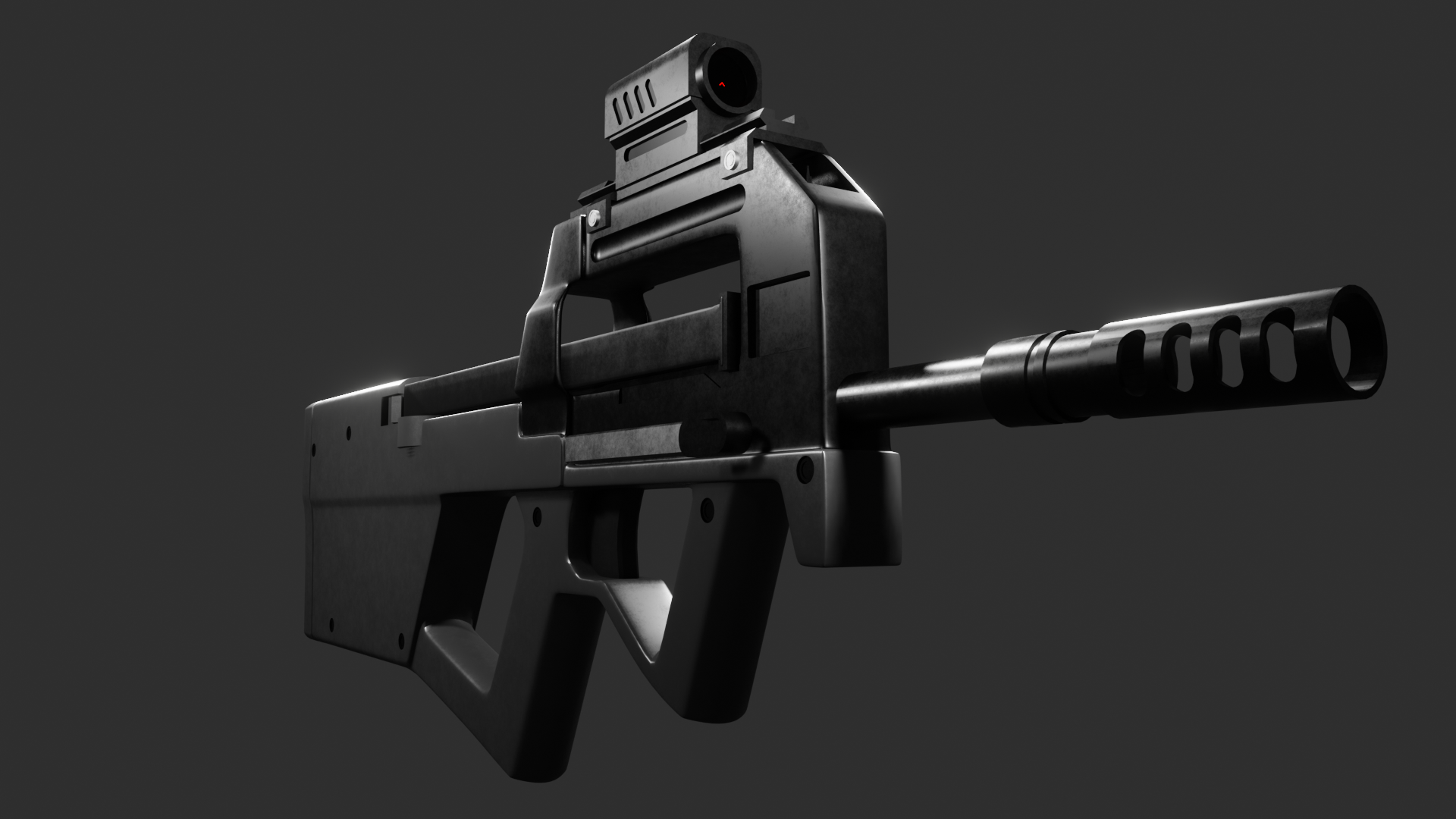 This is a 3D model of the SMG P90 that I created and redesigned. And this weapon I named Naudaff P90 SMG.