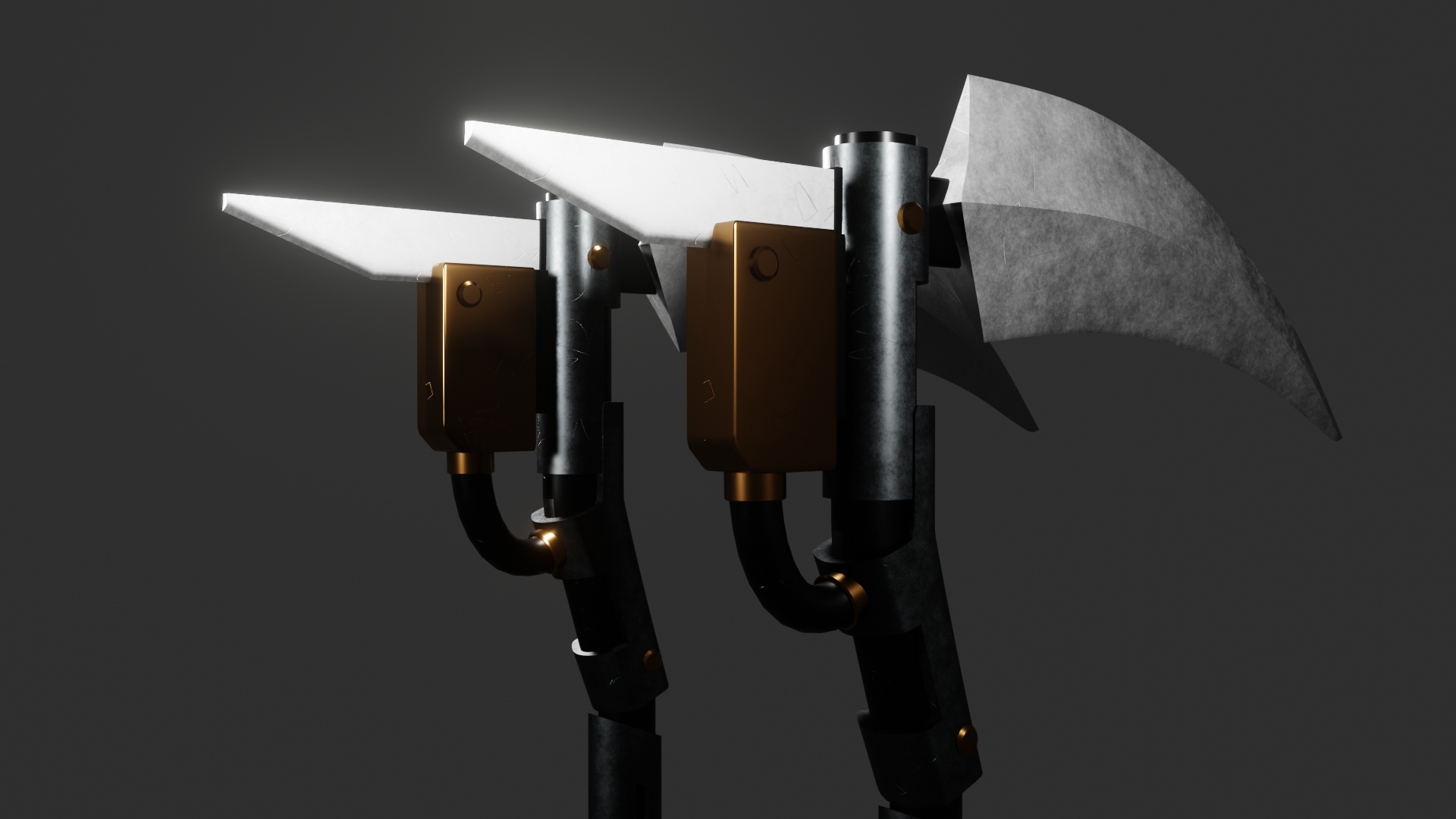 If you know about the game Shadow Fight 2, you must be familiar with a weapon called Mowers. And this is a 3D model of Mowers that I have created.