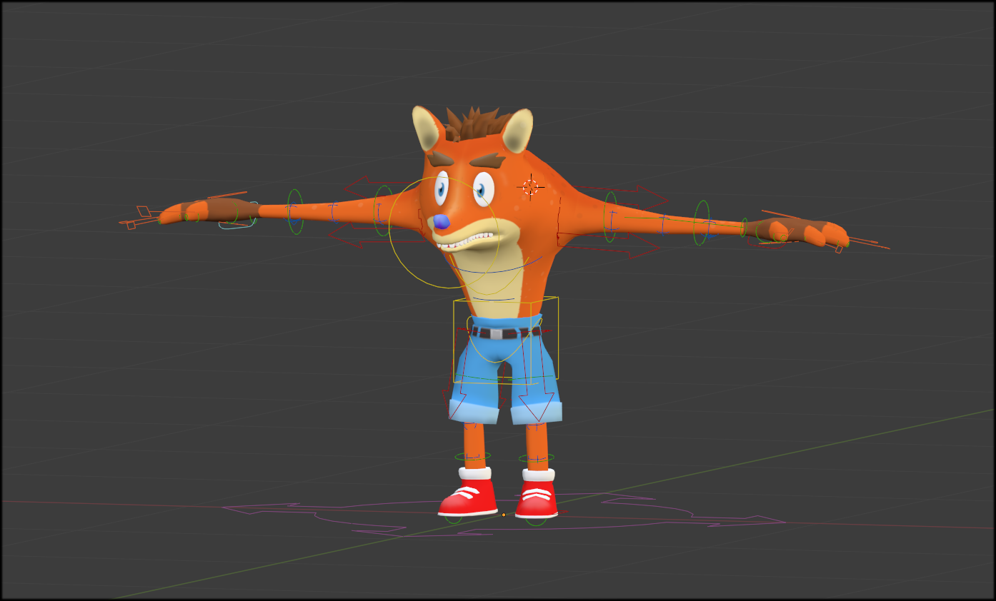 I kept to the spirit of the original Crash game with bold simple shapes and a bright toon style texture map. I put a simple rig in him, but I am not a rigger, so if you want to rip that out and make your own one, no one would blame you.