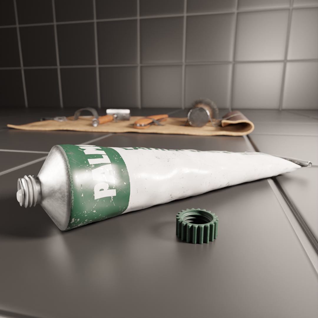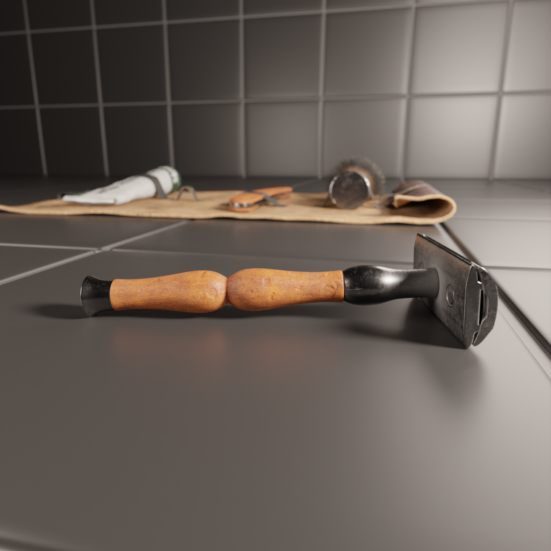 You did excellent work with the shaving set! You need to add some grunge and imperfections to tiles to look more realistic, like you did with the shaving accessories.