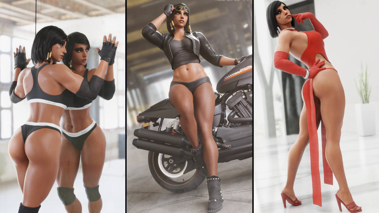 This is a rigged model of Pharah from Overwatch made for Blender 3.0 The model comes with a poses library (over 700 poses and facial expressions), bodymorph (with clothes support), Overwatch 2 armor, multiple outfits, various hairdos and a custom UI.