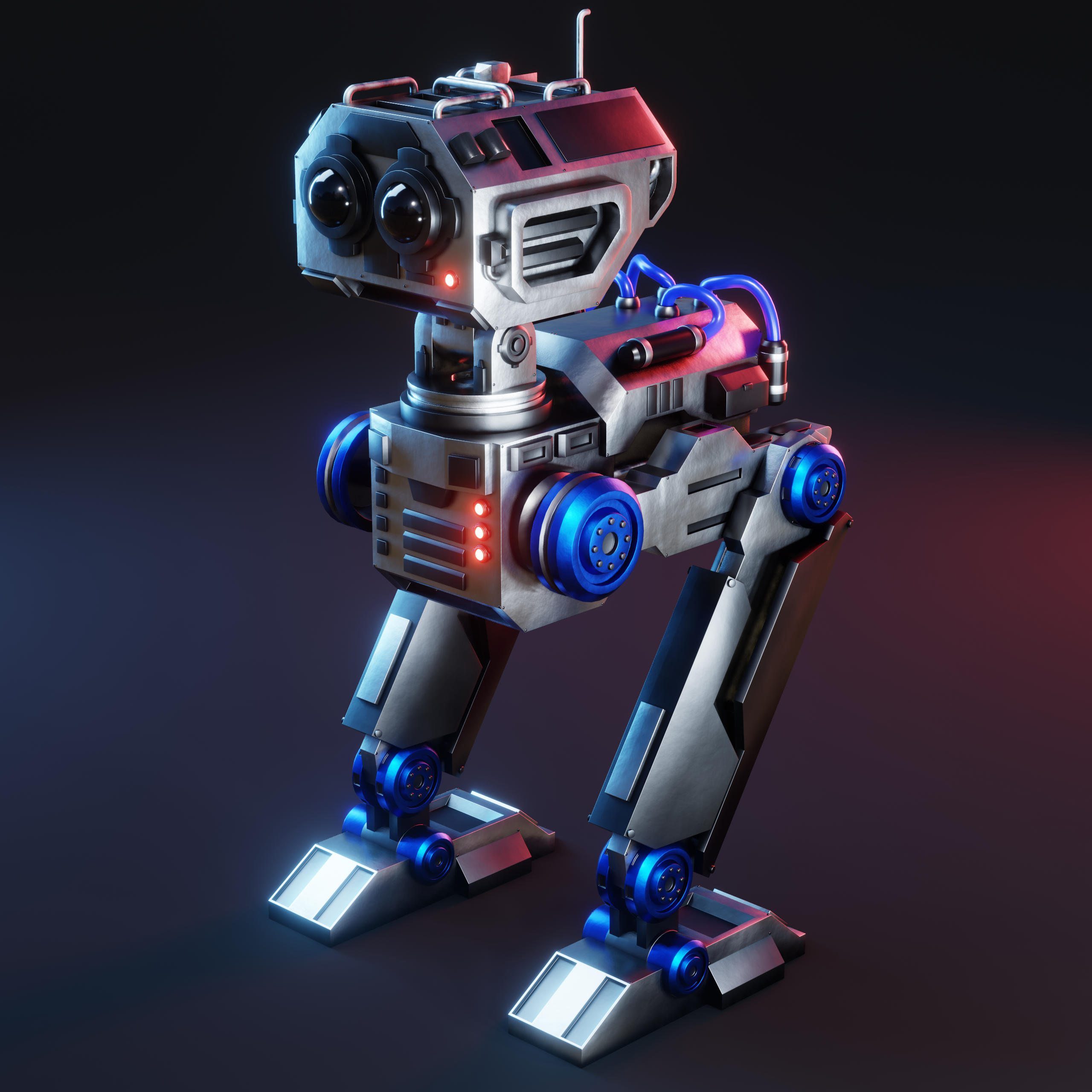 *_So here , I made a simple mechanical robot in blender rendered in eevee render engine. It contains inverse kinematics and is fully rigged with simple moving animation in a scene ready environment. The lighting is mainly provided by the hdri and also the artificial lights in the scene. The materials are all procedural and are fully implementable in eevee render engine. This project can be simply used by an individual or by an organisation for further improving it and creating something cool and intresting or by using it in any of their other projects. This robot is kinda low-poly but looks quite realistic when seen in eevee render engine.*_