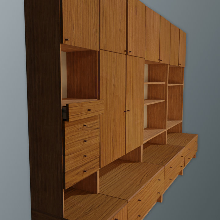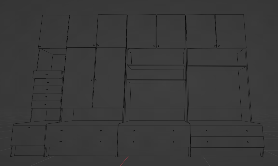 Perfect way to decorate your post soviet room with set of 4 cabinets/cupboards, a wall unit or furniture set. Whatever you call that aesthetic abomination! Low poly, low res. There are shape keys that warp the models slightly to avoid perfectly straight lines.