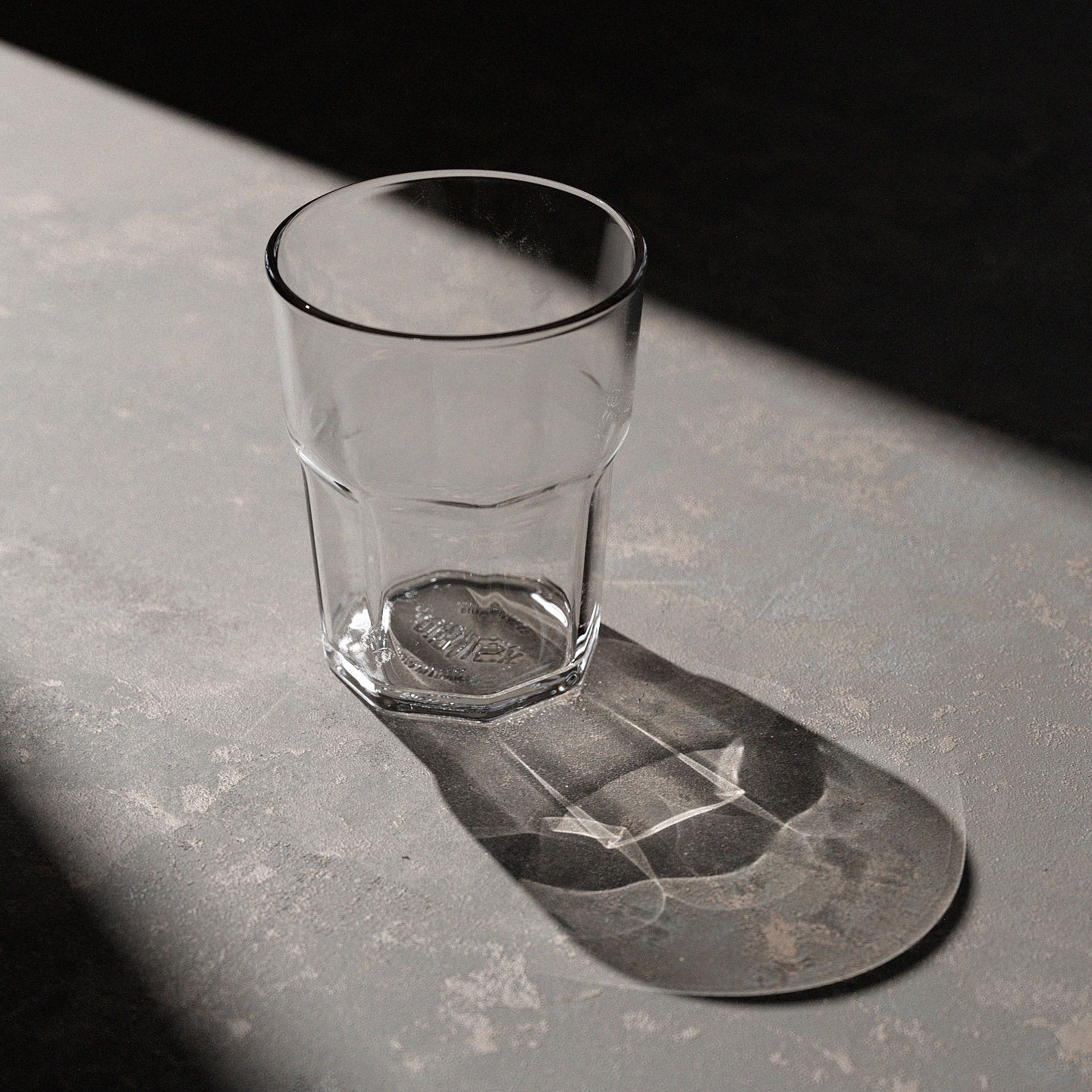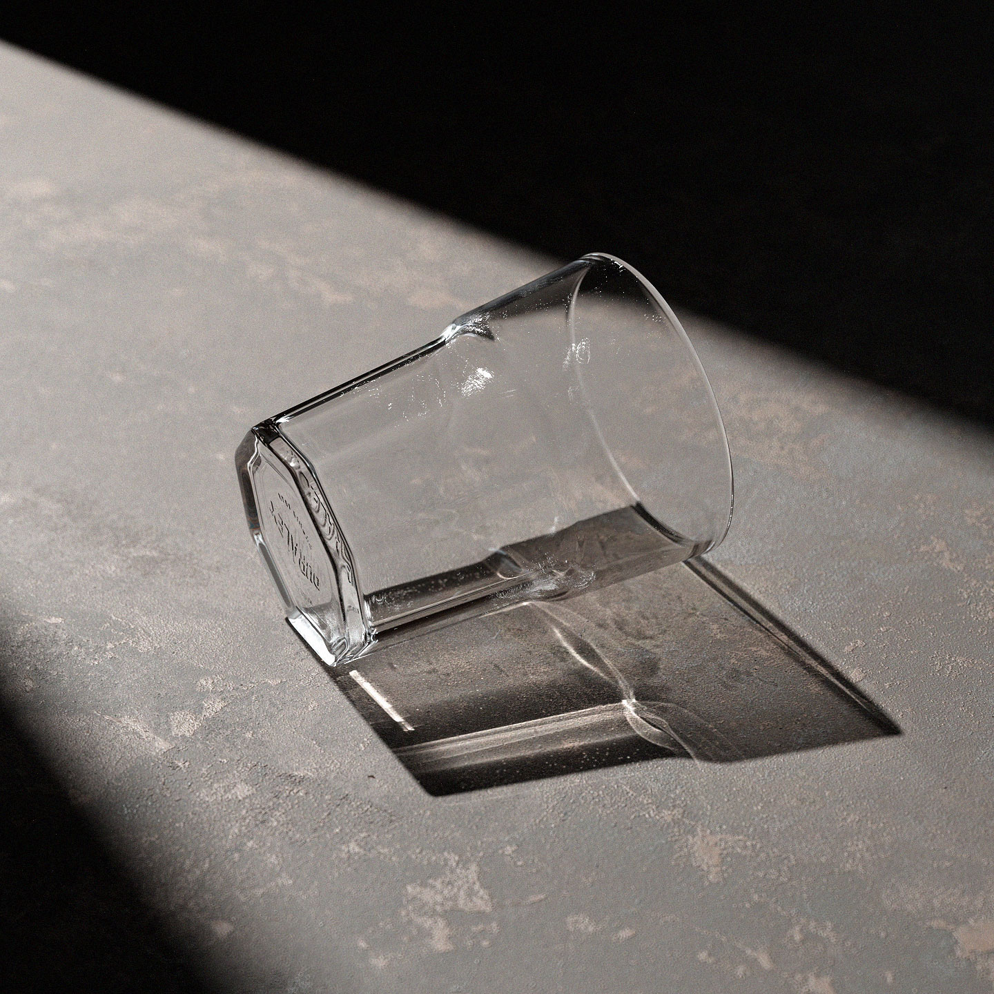 Standard 8 sided drinking cup - glass - ikea style - duralex branded - high quality - logo bump map and smudges