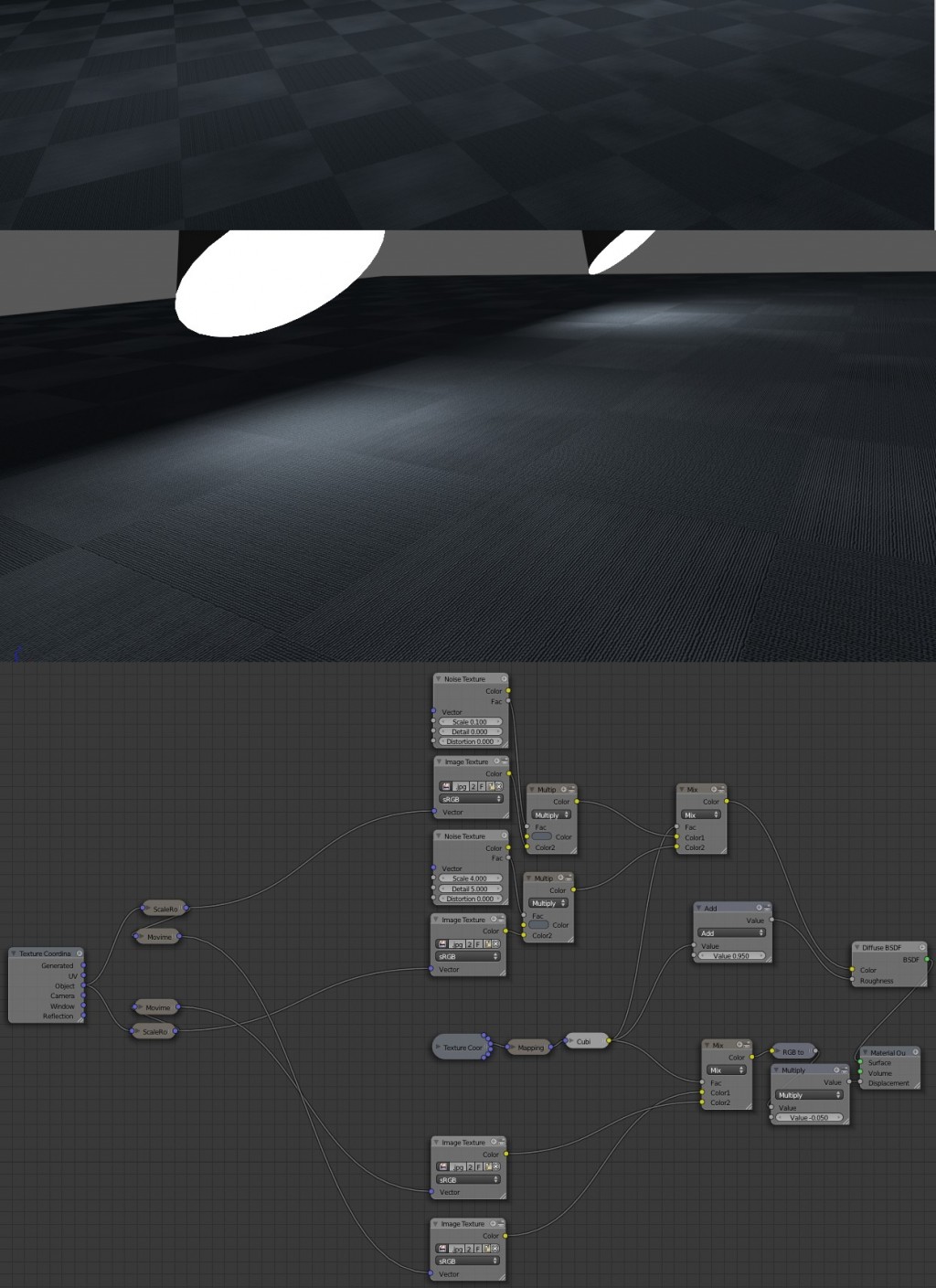 It includes the carpet texture and bump map. It also include a chessbox texture for the carpet pattern